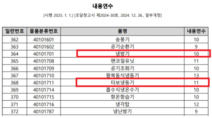 냉동기의 사용연수가 24년이어서 조달청에서 고시한 내용연수 10~11년을 이미 2배 이상 초과한 상태이므로 효율이 좋은 고효율 제품으로의 교체를 권장함
