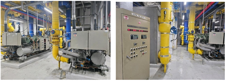 현재 주력 냉방열원설비로 운영하고 있는 빙축열용 냉동기의 사용연수가 오래되어 장비의 노후도가 심한 상태이어서 고장과 에러가 자주 발생하고 있고, 운전 효율도 장비 본연의 성능과 비교하여 41% 수준으로 매우 낮은 것으로 측정되었음