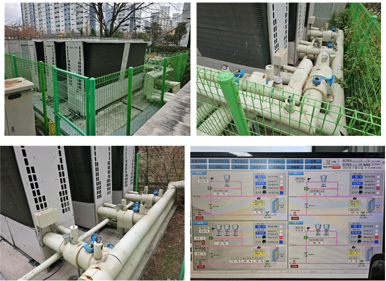 - 각 히트펌프 실외기별로 균일한 유량이 흐르지 않을 경우 장비별 가동정지 회수나 가동시간의 차이가 발생하게 되고, 이로 인해 장비(스크롤압축기 모터)의 수명이 단축되는 결과를 가져올 수 있음