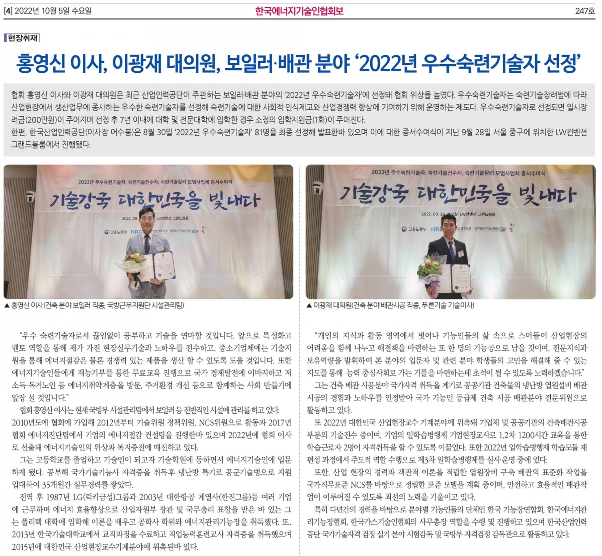 푸른기술 이광재 이사, 2022년 우수숙련기술자 선정